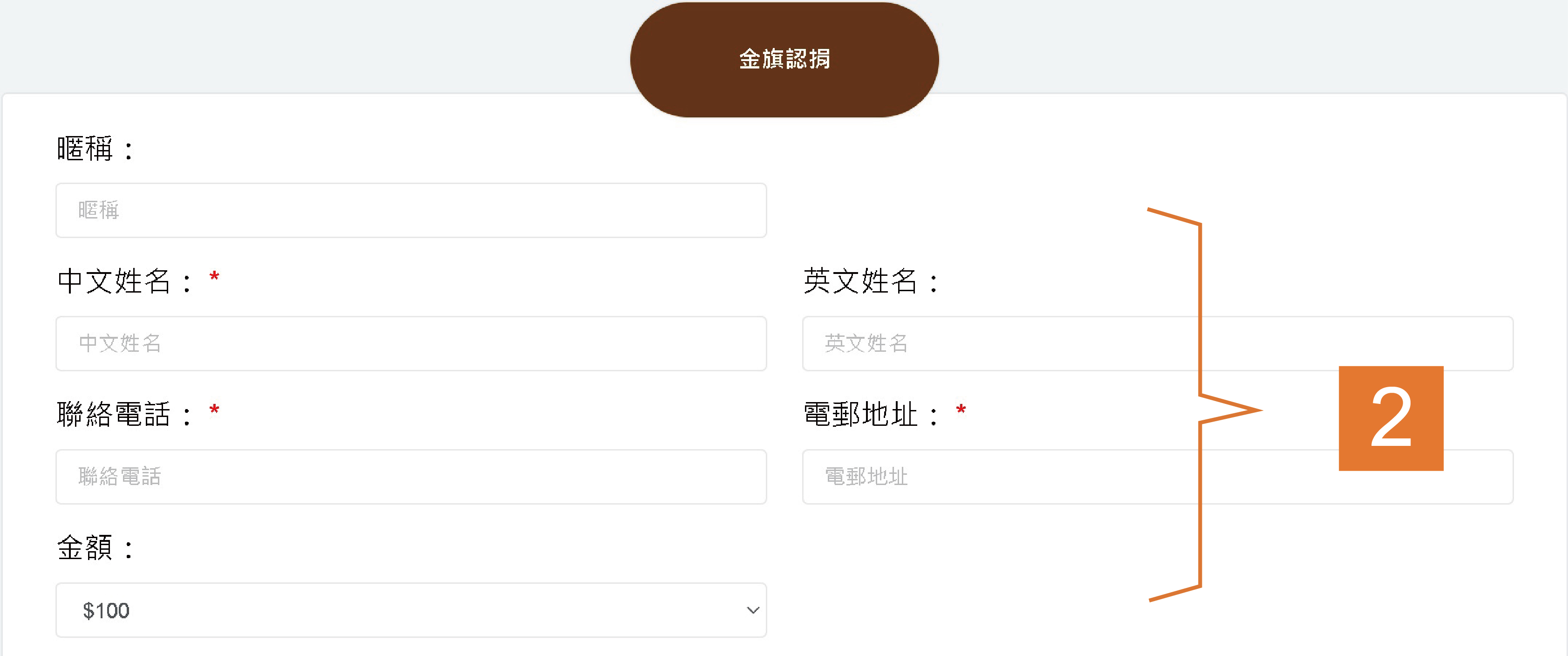 2) 在捐款頁面輸入所需資料,包括暱稱、姓名、聯絡電話、電郵地址,以及捐款金額