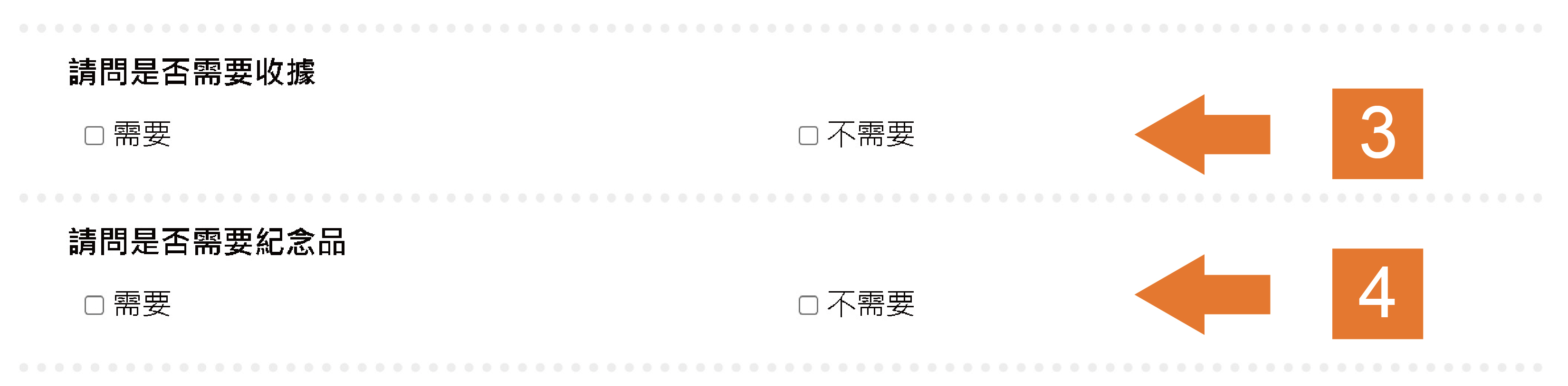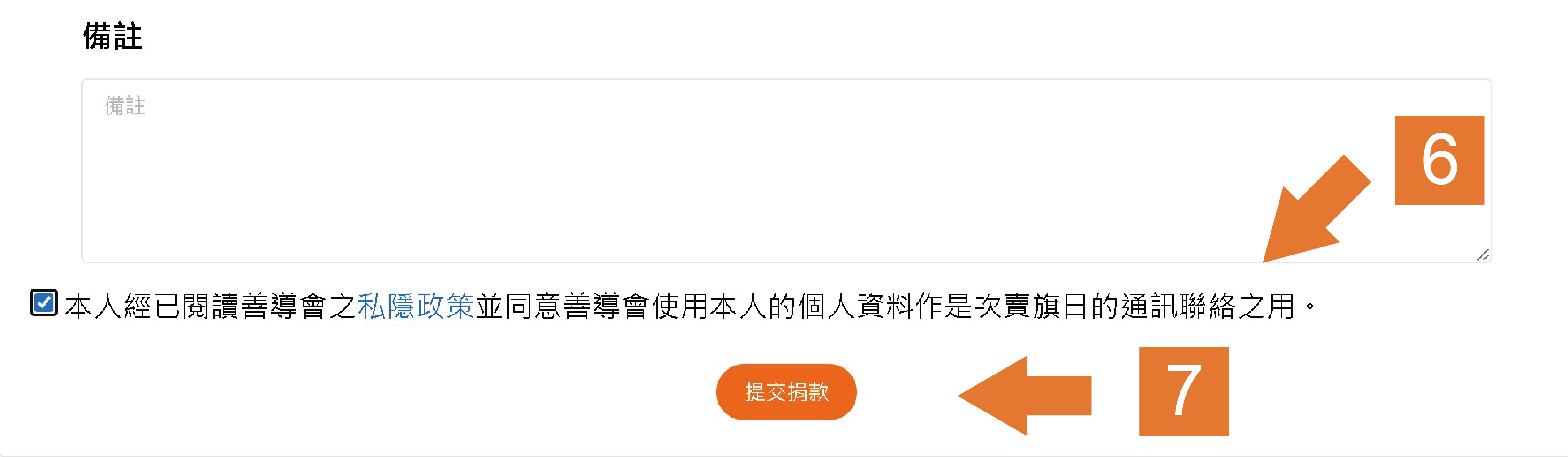 4) 請選擇是否需要紀念品。如需要,請選擇自取,地址為︰香港灣仔軒尼詩道 15 號溫莎公爵社會服務大廈702室-善導會總辦事處。在賣旗日完結後,我們會聯絡閣下領取紀念品的安排。(只適用於捐款港幣 100 元或以上)